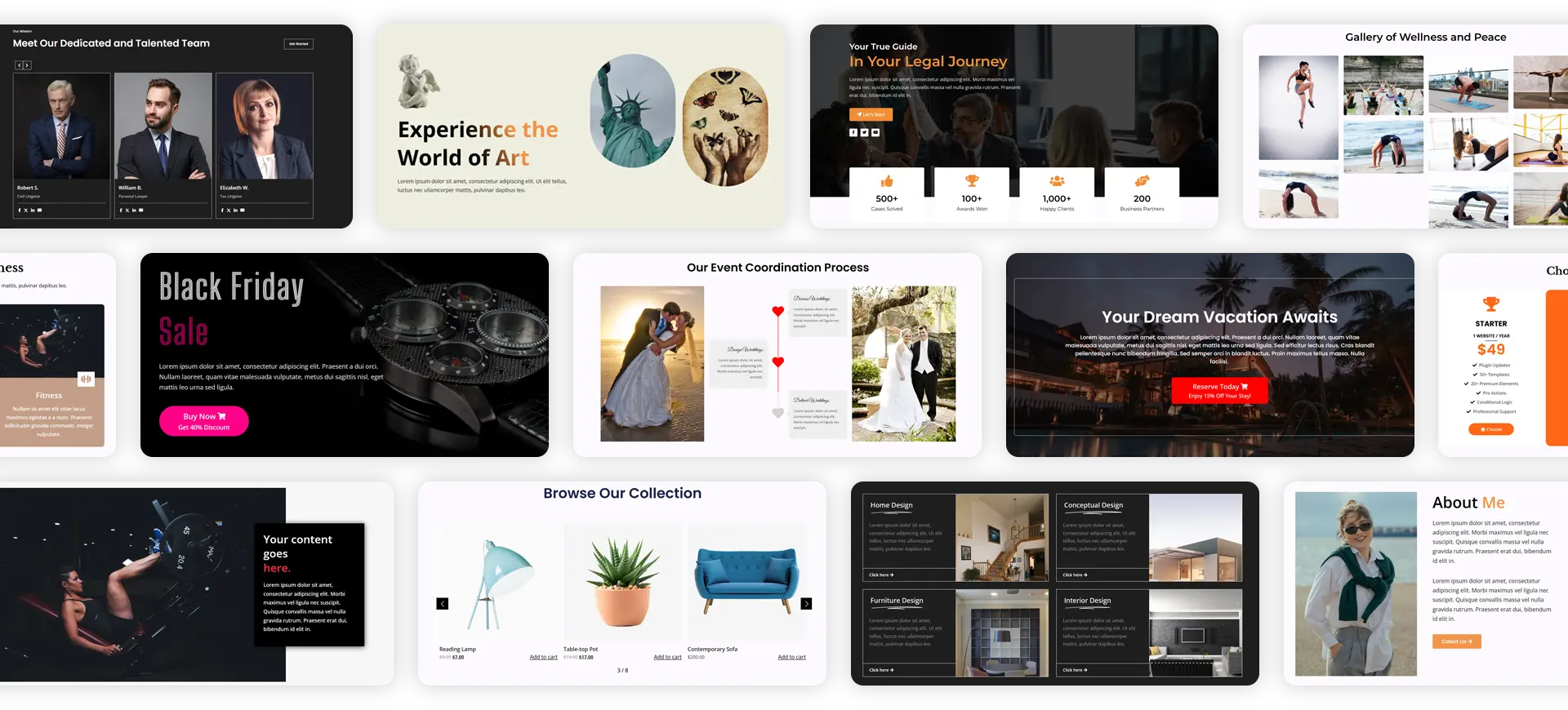 Explore a collection of over 300 pre-designed sections, ready to be customized to fit your needs. Build stunning layouts effortlessly and give your site a professional edge in no time.