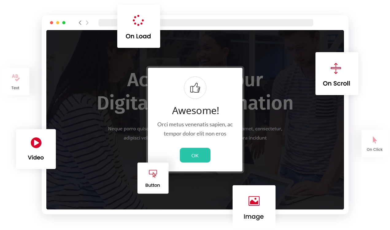 Grab user attention instantly and display interactive Elementor popups using the Modal Popup widget by WPMozo Addons for Elementor plugin. Display the images, text, and layouts in the Elementor video lightbox. Utilize several modal triggers to open the popup window. Additionally, add a variety of engaging entry animations to modal popups to make them appealing, sophisticated, and suitable for a variety of contexts.